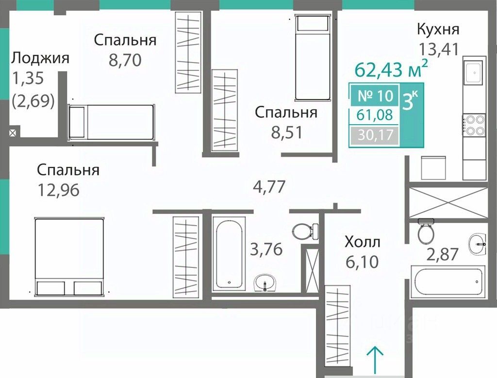 62,43 м²