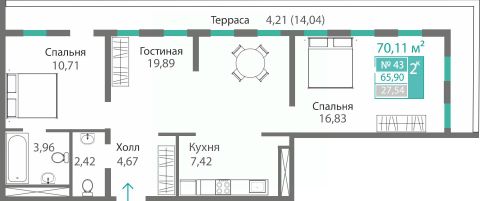 70,11 м²