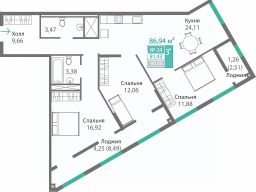 Продаётся 3-комнатная квартира в строящемся доме (Дом 1 (Секции Т2.2, Т4.1)), срок сдачи: I-кв. 2029, общей площадью 86.94 кв.м., на 5 этаже. Новый жилой комплекс "Благо" от застройщика "Монолит" расположен по адресу: Республика Крым, Симферопольский район, село Перово