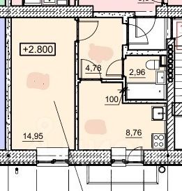 - площадь квартиры 30,7 м2, из них кухня - 8,7 м2, спальня - 14,9 м2;
