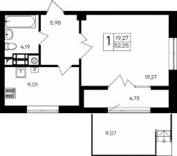 Продаётся 1-комнатная квартира в строящемся доме (Корпус 3), срок сдачи: II-кв. 2027, общей площадью 52.25 кв.м., на 5 этаже. "Парковые кварталы" - новый объект от "ИнтерСтрой"