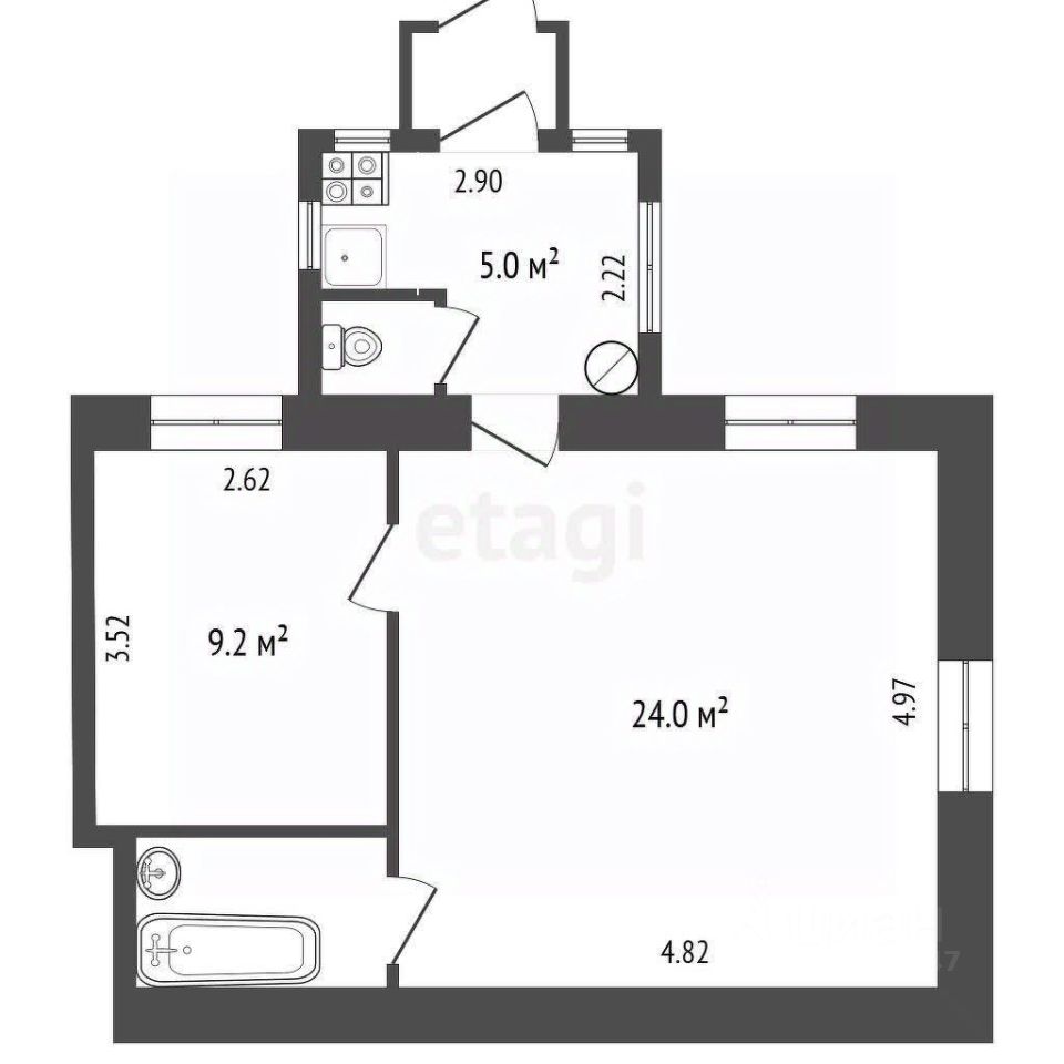 Общая площадь 43,7 кв.м. , кухня 10,5 кв.м. Квартира теплая, есть всё необходимое для проживания. Санузел раздельный.