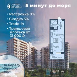 ЗВОНИТЕ ПРЯМО СЕЙЧАС, ЧТОБЫ ПОЛУЧИТЬ ВЫГОДУ ДО 650 000 руб! АКЦИИ: * Ипотека от 14,7% * ТРАНШЕВАЯ ИПОТЕКА - ПВ от 20%, платежи от 31000 в месяц * Рассрочка 0% до 2028г. ПВ от 20% * Скидка 5% * Бронь на 30 дней * 5 мин до моря пешком, планировки от 30 кв.м. * Высота потолков 3 м , предчистовая и чистовая отделка * Ипотека от СБЕРБАНКА * Доходность инвестиций от 30% годовых. * Сдача в аренду от управляющей компании (доверительное управление) позволяет получать доход от сдачи апартаментов без вашего участия * Безопасная сделка по ФЗ-214/эскроу-счёта "Аллея Дружбы" — это комплекс апартаментов бизнес-класса в Евпатории, расположенный в 5 минутах прогулки от золотистых пляжей Чёрного моря. Два современных 12-этажных корпуса с панорамными видами на море объединены стильным стилобатом с центральным входом и бутиковыми retail-площадями, а закрытая территория и подземный паркинг обеспечивает приватность и безопасность. АРХИТЕКТУРА И КОНСТРУКТИВНЫЕ ОСОБЕННОСТИ: • 12-этажное здание в авторском архитектурном стиле • Высота потолков (от 2,9 м до 3,1 м) • Эксклюзивное решение для первых этажей (высота потолков 3,4м) • Евро планировки с террасами и гардеробными • Панорамное ламинированное остекление • Индивидуальные келлеры • Видовые лоты на море • Высокоскоростные лифты по концепции 5* отеля • Предусмотрено резервное электроснабжение • По проекту предусмотрено место для кондиционера и практическое решение для маскировки коммуникаций ЛОКАЦИЯ И ОКРУЖЕНИЕ: • До центра Евпатории - 7 минут на машине • Пляж - всего 5 минут пешком • Рядом с комплексом развитая инфраструктура (рестораны, магазины, кафе, медицинские учреждения, санатории) ГОСТЕПРИИМСТВО И БЕЗУПРЕЧНЫЕ СЕРВИСЫ: • Управляющая компания премиум-класса • Консъерж-сервис 24/7 • Доставки продуктов и готовой еды • Зона ресепшн оформлена в стилистике комплекса • Лобби с атмосферным кафе и зонами для чтения • Премиальное решение для мест общего пользования • Интерактивная детская комната для самых маленьких • Пункты выдачи товаров от маркетплейсов • Гостевые парковочные места • Организовано место для хранения колясок ваших малышей • Ремонт на выбор "Комфорт-формат" и "Гранд-формат" БЕЗОПАСНОСТЬ И ТЕХНОЛОГИИ СПОКОЙСТВИЯ: • Закрытая территория, двор без машин • Система контроля доступа (строго по электронным пропускам) • Подземный паркинг с тремя типами машиномест • Выделенные места для велосипедов • Камеры видеонаблюдения • Круглосуточный ресепшн • Телеметрия - автоматический сбор и передача данных с приборов учета апартамента минимизирует ошибки и мошенничество • Система умного апартамента с дистанционным управлением БЛАГОУСТРОЙСТВО ТЕРРИТОРИИ: • Ландшафтный дизайн по проекту (2 334 м² озеленения) • Прогулочные аллеи и зоны отдыха для расслабления и медитации • Коворкинг-зоны с высокоскоростным Wi-Fi для бизнес-переговоров • Детские и спортивные площадки • В апарт-комплексе вас ждут мини-маркет и магазин повседневных товаров • Специальное пространство для курения • Выделенная площадка для