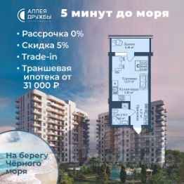 ЗВОНИТЕ ПРЯМО СЕЙЧАС, ЧТОБЫ ПОЛУЧИТЬ ВЫГОДУ ДО 650 000 руб! Цена указана со скидкой 5% при условии 100% оплаты либо ипотека. АКЦИИ: * Ипотека от 14,7% * ТРАНШЕВАЯ ИПОТЕКА - ПВ от 20%, платежи от 31000 в месяц * Рассрочка 0% до 2028г. ПВ от 20% * Скидка 5% * Бронь на 30 дней * 5 мин до моря пешком, планировки от 30 кв.м. * Высота потолков 3 м , предчистовая и чистовая отделка * Ипотека от СБЕРБАНКА * Доходность инвестиций от 30% годовых. * Сдача в аренду от управляющей компании (доверительное управление) позволяет получать доход от сдачи апартаментов без вашего участия * Безопасная сделка по ФЗ-214/эскроу-счёта "Аллея Дружбы" — это комплекс апартаментов бизнес-класса в Евпатории, расположенный в 5 минутах прогулки от золотистых пляжей Чёрного моря. Два современных 12-этажных корпуса с панорамными видами на море объединены стильным стилобатом с центральным входом и бутиковыми retail-площадями, а закрытая территория и подземный паркинг обеспечивает приватность и безопасность. АРХИТЕКТУРА И КОНСТРУКТИВНЫЕ ОСОБЕННОСТИ: • 12-этажное здание в авторском архитектурном стиле • Высота потолков (от 2,9 м до 3,1 м) • Эксклюзивное решение для первых этажей (высота потолков 3,4м) • Евро планировки с террасами и гардеробными • Панорамное ламинированное остекление • Индивидуальные келлеры • Видовые лоты на море • Высокоскоростные лифты по концепции 5* отеля • Предусмотрено резервное электроснабжение • По проекту предусмотрено место для кондиционера и практическое решение для маскировки коммуникаций ЛОКАЦИЯ И ОКРУЖЕНИЕ: • До центра Евпатории - 7 минут на машине • Пляж - всего 5 минут пешком • Рядом с комплексом развитая инфраструктура (рестораны, магазины, кафе, медицинские учреждения, санатории) ГОСТЕПРИИМСТВО И БЕЗУПРЕЧНЫЕ СЕРВИСЫ: • Управляющая компания премиум-класса • Консъерж-сервис 24/7 • Доставки продуктов и готовой еды • Зона ресепшн оформлена в стилистике комплекса • Лобби с атмосферным кафе и зонами для чтения • Премиальное решение для мест общего пользования • Интерактивная детская комната для самых маленьких • Пункты выдачи товаров от маркетплейсов • Гостевые парковочные места • Организовано место для хранения колясок ваших малышей • Ремонт на выбор "Комфорт-формат" и "Гранд-формат" БЕЗОПАСНОСТЬ И ТЕХНОЛОГИИ СПОКОЙСТВИЯ: • Закрытая территория, двор без машин • Система контроля доступа (строго по электронным пропускам) • Подземный паркинг с тремя типами машиномест • Выделенные места для велосипедов • Камеры видеонаблюдения • Круглосуточный ресепшн • Телеметрия - автоматический сбор и передача данных с приборов учета апартамента минимизирует ошибки и мошенничество • Система умного апартамента с дистанционным управлением БЛАГОУСТРОЙСТВО ТЕРРИТОРИИ: • Ландшафтный дизайн по проекту (2 334 м² озеленения) • Прогулочные аллеи и зоны отдыха для расслабления и медитации • Коворкинг-зоны с высокоскоростным Wi-Fi для бизнес-переговоров • Детские и спортивные площадки • В апарт-комплексе вас ждут мини-маркет и магазин повседневных товаров