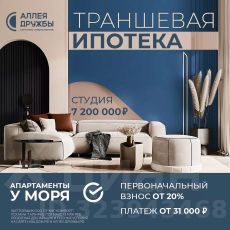 ЗВОНИТЕ ПРЯМО СЕЙЧАС, ЧТОБЫ ПОЛУЧИТЬ ВЫГОДУ ДО 650 000 руб! Цена указана со скидкой 5% при условии 100% оплаты либо ипотека. АКЦИИ: * Ипотека от 14,7% * ТРАНШЕВАЯ ИПОТЕКА - ПВ от 20%, платежи от 31000 в месяц * Рассрочка 0% до 2028г. ПВ от 20% * Скидка 5% * Бронь на 30 дней * 5 мин до моря пешком, планировки от 30 кв.м. * Высота потолков 3 м , предчистовая и чистовая отделка * Ипотека от СБЕРБАНКА * Доходность инвестиций от 30% годовых. * Сдача в аренду от управляющей компании (доверительное управление) позволяет получать доход от сдачи апартаментов без вашего участия * Безопасная сделка по ФЗ-214/эскроу-счёта "Аллея Дружбы" — это комплекс апартаментов бизнес-класса в Евпатории, расположенный в 5 минутах прогулки от золотистых пляжей Чёрного моря. Два современных 12-этажных корпуса с панорамными видами на море объединены стильным стилобатом с центральным входом и бутиковыми retail-площадями, а закрытая территория и подземный паркинг обеспечивает приватность и безопасность. АРХИТЕКТУРА И КОНСТРУКТИВНЫЕ ОСОБЕННОСТИ: • 12-этажное здание в авторском архитектурном стиле • Высота потолков (от 2,9 м до 3,1 м) • Эксклюзивное решение для первых этажей (высота потолков 3,4м) • Евро планировки с террасами и гардеробными • Панорамное ламинированное остекление • Индивидуальные келлеры • Видовые лоты на море • Высокоскоростные лифты по концепции 5* отеля • Предусмотрено резервное электроснабжение • По проекту предусмотрено место для кондиционера и практическое решение для маскировки коммуникаций ЛОКАЦИЯ И ОКРУЖЕНИЕ: • До центра Евпатории - 7 минут на машине • Пляж - всего 5 минут пешком • Рядом с комплексом развитая инфраструктура (рестораны, магазины, кафе, медицинские учреждения, санатории) ГОСТЕПРИИМСТВО И БЕЗУПРЕЧНЫЕ СЕРВИСЫ: • Управляющая компания премиум-класса • Консъерж-сервис 24/7 • Доставки продуктов и готовой еды • Зона ресепшн оформлена в стилистике комплекса • Лобби с атмосферным кафе и зонами для чтения • Премиальное решение для мест общего пользования • Интерактивная детская комната для самых маленьких • Пункты выдачи товаров от маркетплейсов • Гостевые парковочные места • Организовано место для хранения колясок ваших малышей • Ремонт на выбор "Комфорт-формат" и "Гранд-формат" БЕЗОПАСНОСТЬ И ТЕХНОЛОГИИ СПОКОЙСТВИЯ: • Закрытая территория, двор без машин • Система контроля доступа (строго по электронным пропускам) • Подземный паркинг с тремя типами машиномест • Выделенные места для велосипедов • Камеры видеонаблюдения • Круглосуточный ресепшн • Телеметрия - автоматический сбор и передача данных с приборов учета апартамента минимизирует ошибки и мошенничество • Система умного апартамента с дистанционным управлением БЛАГОУСТРОЙСТВО ТЕРРИТОРИИ: • Ландшафтный дизайн по проекту (2 334 м² озеленения) • Прогулочные аллеи и зоны отдыха для расслабления и медитации • Коворкинг-зоны с высокоскоростным Wi-Fi для бизнес-переговоров • Детские и спортивные площадки • В апарт-комплексе вас ждут мини-маркет и магазин повседневных товаров