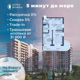 ЗВОНИТЕ ПРЯМО СЕЙЧАС, ЧТОБЫ ПОЛУЧИТЬ ВЫГОДУ ДО 650 000 руб! Скидка 5% при условии 100% оплаты либо ипотека. АКЦИИ: * Ипотека от 14,7% * ТРАНШЕВАЯ ИПОТЕКА - ПВ от 20%, платежи от 31000 в месяц * Рассрочка 0% до 2028г. ПВ от 20% * Скидка 5% * Бронь на 30 дней * 5 мин до моря пешком, планировки от 30 кв.м. * Высота потолков 3 м , предчистовая и чистовая отделка * Ипотека от СБЕРБАНКА * Доходность инвестиций от 30% годовых. * Сдача в аренду от управляющей компании (доверительное управление) позволяет получать доход от сдачи апартаментов без вашего участия * Безопасная сделка по ФЗ-214/эскроу-счёта "Аллея Дружбы" — это комплекс апартаментов бизнес-класса в Евпатории, расположенный в 5 минутах прогулки от золотистых пляжей Чёрного моря. Два современных 12-этажных корпуса с панорамными видами на море объединены стильным стилобатом с центральным входом и бутиковыми retail-площадями, а закрытая территория и подземный паркинг обеспечивает приватность и безопасность. АРХИТЕКТУРА И КОНСТРУКТИВНЫЕ ОСОБЕННОСТИ: • 12-этажное здание в авторском архитектурном стиле • Высота потолков (от 2,9 м до 3,1 м) • Эксклюзивное решение для первых этажей (высота потолков 3,4м) • Евро планировки с террасами и гардеробными • Панорамное ламинированное остекление • Индивидуальные келлеры • Видовые лоты на море • Высокоскоростные лифты по концепции 5* отеля • Предусмотрено резервное электроснабжение • По проекту предусмотрено место для кондиционера и практическое решение для маскировки коммуникаций ЛОКАЦИЯ И ОКРУЖЕНИЕ: • До центра Евпатории - 7 минут на машине • Пляж - всего 5 минут пешком • Рядом с комплексом развитая инфраструктура (рестораны, магазины, кафе, медицинские учреждения, санатории) ГОСТЕПРИИМСТВО И БЕЗУПРЕЧНЫЕ СЕРВИСЫ: • Управляющая компания премиум-класса • Консъерж-сервис 24/7 • Доставки продуктов и готовой еды • Зона ресепшн оформлена в стилистике комплекса • Лобби с атмосферным кафе и зонами для чтения • Премиальное решение для мест общего пользования • Интерактивная детская комната для самых маленьких • Пункты выдачи товаров от маркетплейсов • Гостевые парковочные места • Организовано место для хранения колясок ваших малышей • Ремонт на выбор "Комфорт-формат" и "Гранд-формат" БЕЗОПАСНОСТЬ И ТЕХНОЛОГИИ СПОКОЙСТВИЯ: • Закрытая территория, двор без машин • Система контроля доступа (строго по электронным пропускам) • Подземный паркинг с тремя типами машиномест • Выделенные места для велосипедов • Камеры видеонаблюдения • Круглосуточный ресепшн • Телеметрия - автоматический сбор и передача данных с приборов учета апартамента минимизирует ошибки и мошенничество • Система умного апартамента с дистанционным управлением БЛАГОУСТРОЙСТВО ТЕРРИТОРИИ: • Ландшафтный дизайн по проекту (2 334 м² озеленения) • Прогулочные аллеи и зоны отдыха для расслабления и медитации • Коворкинг-зоны с высокоскоростным Wi-Fi для бизнес-переговоров • Детские и спортивные площадки • В апарт-комплексе вас ждут мини-маркет и магазин повседневных товаров • Специальное пр