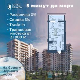 ЗВОНИТЕ ПРЯМО СЕЙЧАС, ЧТОБЫ ПОЛУЧИТЬ ВЫГОДУ ДО 650 000 руб! Цена указана со скидкой 5% при условии 100% оплаты либо ипотека. АКЦИИ: * Ипотека от 14,7% * ТРАНШЕВАЯ ИПОТЕКА - ПВ от 20%, платежи от 31000 в месяц * Рассрочка 0% до 2028г. ПВ от 20% * Скидка 5% * Бронь на 30 дней * 5 мин до моря пешком, планировки от 30 кв.м. * Высота потолков 3 м , предчистовая и чистовая отделка * Ипотека от СБЕРБАНКА * Доходность инвестиций от 30% годовых. * Сдача в аренду от управляющей компании (доверительное управление) позволяет получать доход от сдачи апартаментов без вашего участия * Безопасная сделка по ФЗ-214/эскроу-счёта "Аллея Дружбы" — это комплекс апартаментов бизнес-класса в Евпатории, расположенный в 5 минутах прогулки от золотистых пляжей Чёрного моря. Два современных 12-этажных корпуса с панорамными видами на море объединены стильным стилобатом с центральным входом и бутиковыми retail-площадями, а закрытая территория и подземный паркинг обеспечивает приватность и безопасность. АРХИТЕКТУРА И КОНСТРУКТИВНЫЕ ОСОБЕННОСТИ: • 12-этажное здание в авторском архитектурном стиле • Высота потолков (от 2,9 м до 3,1 м) • Эксклюзивное решение для первых этажей (высота потолков 3,4м) • Евро планировки с террасами и гардеробными • Панорамное ламинированное остекление • Индивидуальные келлеры • Видовые лоты на море • Высокоскоростные лифты по концепции 5* отеля • Предусмотрено резервное электроснабжение • По проекту предусмотрено место для кондиционера и практическое решение для маскировки коммуникаций ЛОКАЦИЯ И ОКРУЖЕНИЕ: • До центра Евпатории - 7 минут на машине • Пляж - всего 5 минут пешком • Рядом с комплексом развитая инфраструктура (рестораны, магазины, кафе, медицинские учреждения, санатории) ГОСТЕПРИИМСТВО И БЕЗУПРЕЧНЫЕ СЕРВИСЫ: • Управляющая компания премиум-класса • Консъерж-сервис 24/7 • Доставки продуктов и готовой еды • Зона ресепшн оформлена в стилистике комплекса • Лобби с атмосферным кафе и зонами для чтения • Премиальное решение для мест общего пользования • Интерактивная детская комната для самых маленьких • Пункты выдачи товаров от маркетплейсов • Гостевые парковочные места • Организовано место для хранения колясок ваших малышей • Ремонт на выбор "Комфорт-формат" и "Гранд-формат" БЕЗОПАСНОСТЬ И ТЕХНОЛОГИИ СПОКОЙСТВИЯ: • Закрытая территория, двор без машин • Система контроля доступа (строго по электронным пропускам) • Подземный паркинг с тремя типами машиномест • Выделенные места для велосипедов • Камеры видеонаблюдения • Круглосуточный ресепшн • Телеметрия - автоматический сбор и передача данных с приборов учета апартамента минимизирует ошибки и мошенничество • Система умного апартамента с дистанционным управлением БЛАГОУСТРОЙСТВО ТЕРРИТОРИИ: • Ландшафтный дизайн по проекту (2 334 м² озеленения) • Прогулочные аллеи и зоны отдыха для расслабления и медитации • Коворкинг-зоны с высокоскоростным Wi-Fi для бизнес-переговоров • Детские и спортивные площадки • В апарт-комплексе вас ждут мини-маркет и магазин повседневных товаров