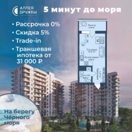 ЗВОНИТЕ ПРЯМО СЕЙЧАС, ЧТОБЫ ПОЛУЧИТЬ ВЫГОДУ ДО 650 000 руб! Цена указана со скидкой 5% при условии 100% оплаты либо ипотека. АКЦИИ: * Ипотека от 14,7% * ТРАНШЕВАЯ ИПОТЕКА - ПВ от 20%, платежи от 31000 в месяц * Рассрочка 0% до 2028г. ПВ от 20% * Скидка 5% * Бронь на 30 дней * 5 мин до моря пешком, планировки от 30 кв.м. * Высота потолков 3 м , предчистовая и чистовая отделка * Ипотека от СБЕРБАНКА * Доходность инвестиций от 30% годовых. * Сдача в аренду от управляющей компании (доверительное управление) позволяет получать доход от сдачи апартаментов без вашего участия * Безопасная сделка по ФЗ-214/эскроу-счёта "Аллея Дружбы" — это комплекс апартаментов бизнес-класса в Евпатории, расположенный в 5 минутах прогулки от золотистых пляжей Чёрного моря. Два современных 12-этажных корпуса с панорамными видами на море объединены стильным стилобатом с центральным входом и бутиковыми retail-площадями, а закрытая территория и подземный паркинг обеспечивает приватность и безопасность. АРХИТЕКТУРА И КОНСТРУКТИВНЫЕ ОСОБЕННОСТИ: • 12-этажное здание в авторском архитектурном стиле • Высота потолков (от 2,9 м до 3,1 м) • Эксклюзивное решение для первых этажей (высота потолков 3,4м) • Евро планировки с террасами и гардеробными • Панорамное ламинированное остекление • Индивидуальные келлеры • Видовые лоты на море • Высокоскоростные лифты по концепции 5* отеля • Предусмотрено резервное электроснабжение • По проекту предусмотрено место для кондиционера и практическое решение для маскировки коммуникаций ЛОКАЦИЯ И ОКРУЖЕНИЕ: • До центра Евпатории - 7 минут на машине • Пляж - всего 5 минут пешком • Рядом с комплексом развитая инфраструктура (рестораны, магазины, кафе, медицинские учреждения, санатории) ГОСТЕПРИИМСТВО И БЕЗУПРЕЧНЫЕ СЕРВИСЫ: • Управляющая компания премиум-класса • Консъерж-сервис 24/7 • Доставки продуктов и готовой еды • Зона ресепшн оформлена в стилистике комплекса • Лобби с атмосферным кафе и зонами для чтения • Премиальное решение для мест общего пользования • Интерактивная детская комната для самых маленьких • Пункты выдачи товаров от маркетплейсов • Гостевые парковочные места • Организовано место для хранения колясок ваших малышей • Ремонт на выбор "Комфорт-формат" и "Гранд-формат" БЕЗОПАСНОСТЬ И ТЕХНОЛОГИИ СПОКОЙСТВИЯ: • Закрытая территория, двор без машин • Система контроля доступа (строго по электронным пропускам) • Подземный паркинг с тремя типами машиномест • Выделенные места для велосипедов • Камеры видеонаблюдения • Круглосуточный ресепшн • Телеметрия - автоматический сбор и передача данных с приборов учета апартамента минимизирует ошибки и мошенничество • Система умного апартамента с дистанционным управлением БЛАГОУСТРОЙСТВО ТЕРРИТОРИИ: • Ландшафтный дизайн по проекту (2 334 м² озеленения) • Прогулочные аллеи и зоны отдыха для расслабления и медитации • Коворкинг-зоны с высокоскоростным Wi-Fi для бизнес-переговоров • Детские и спортивные площадки • В апарт-комплексе вас ждут мини-маркет и магазин повседневных товаров