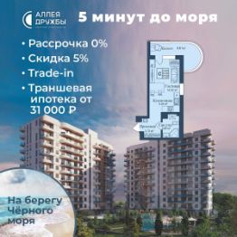 ЗВОНИТЕ ПРЯМО СЕЙЧАС, ЧТОБЫ ПОЛУЧИТЬ ВЫГОДУ ДО 650 000 руб! Цена указана со скидкой 5% при условии 100% оплаты либо ипотека. АКЦИИ: * Ипотека от 14,7% * ТРАНШЕВАЯ ИПОТЕКА - ПВ от 20%, платежи от 31000 в месяц * Рассрочка 0% до 2028г. ПВ от 20% * Скидка 5% * Бронь на 30 дней * 5 мин до моря пешком, планировки от 30 кв.м. * Высота потолков 3 м , предчистовая и чистовая отделка * Ипотека от СБЕРБАНКА * Доходность инвестиций от 30% годовых. * Сдача в аренду от управляющей компании (доверительное управление) позволяет получать доход от сдачи апартаментов без вашего участия * Безопасная сделка по ФЗ-214/эскроу-счёта "Аллея Дружбы" — это комплекс апартаментов бизнес-класса в Евпатории, расположенный в 5 минутах прогулки от золотистых пляжей Чёрного моря. Два современных 12-этажных корпуса с панорамными видами на море объединены стильным стилобатом с центральным входом и бутиковыми retail-площадями, а закрытая территория и подземный паркинг обеспечивает приватность и безопасность. АРХИТЕКТУРА И КОНСТРУКТИВНЫЕ ОСОБЕННОСТИ: • 12-этажное здание в авторском архитектурном стиле • Высота потолков (от 2,9 м до 3,1 м) • Эксклюзивное решение для первых этажей (высота потолков 3,4м) • Евро планировки с террасами и гардеробными • Панорамное ламинированное остекление • Индивидуальные келлеры • Видовые лоты на море • Высокоскоростные лифты по концепции 5* отеля • Предусмотрено резервное электроснабжение • По проекту предусмотрено место для кондиционера и практическое решение для маскировки коммуникаций ЛОКАЦИЯ И ОКРУЖЕНИЕ: • До центра Евпатории - 7 минут на машине • Пляж - всего 5 минут пешком • Рядом с комплексом развитая инфраструктура (рестораны, магазины, кафе, медицинские учреждения, санатории) ГОСТЕПРИИМСТВО И БЕЗУПРЕЧНЫЕ СЕРВИСЫ: • Управляющая компания премиум-класса • Консъерж-сервис 24/7 • Доставки продуктов и готовой еды • Зона ресепшн оформлена в стилистике комплекса • Лобби с атмосферным кафе и зонами для чтения • Премиальное решение для мест общего пользования • Интерактивная детская комната для самых маленьких • Пункты выдачи товаров от маркетплейсов • Гостевые парковочные места • Организовано место для хранения колясок ваших малышей • Ремонт на выбор "Комфорт-формат" и "Гранд-формат" БЕЗОПАСНОСТЬ И ТЕХНОЛОГИИ СПОКОЙСТВИЯ: • Закрытая территория, двор без машин • Система контроля доступа (строго по электронным пропускам) • Подземный паркинг с тремя типами машиномест • Выделенные места для велосипедов • Камеры видеонаблюдения • Круглосуточный ресепшн • Телеметрия - автоматический сбор и передача данных с приборов учета апартамента минимизирует ошибки и мошенничество • Система умного апартамента с дистанционным управлением БЛАГОУСТРОЙСТВО ТЕРРИТОРИИ: • Ландшафтный дизайн по проекту (2 334 м² озеленения) • Прогулочные аллеи и зоны отдыха для расслабления и медитации • Коворкинг-зоны с высокоскоростным Wi-Fi для бизнес-переговоров • Детские и спортивные площадки • В апарт-комплексе вас ждут мини-маркет и магазин повседневных товаров