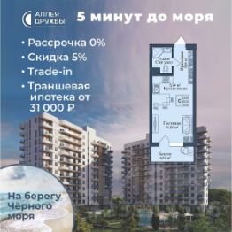 ЗВОНИТЕ ПРЯМО СЕЙЧАС, ЧТОБЫ ПОЛУЧИТЬ ВЫГОДУ ДО 650 000 руб! АКЦИИ: * Ипотека от 14,7% * ТРАНШЕВАЯ ИПОТЕКА - ПВ от 20%, платежи от 31000 в месяц * Рассрочка 0% до 2028г. ПВ от 20% * Скидка 5% * Бронь на 30 дней * 5 мин до моря пешком, планировки от 30 кв.м. * Высота потолков 3 м , предчистовая и чистовая отделка * Ипотека от СБЕРБАНКА * Доходность инвестиций от 30% годовых. * Сдача в аренду от управляющей компании (доверительное управление) позволяет получать доход от сдачи апартаментов без вашего участия * Безопасная сделка по ФЗ-214/эскроу-счёта "Аллея Дружбы" — это комплекс апартаментов бизнес-класса в Евпатории, расположенный в 5 минутах прогулки от золотистых пляжей Чёрного моря. Два современных 12-этажных корпуса с панорамными видами на море объединены стильным стилобатом с центральным входом и бутиковыми retail-площадями, а закрытая территория и подземный паркинг обеспечивает приватность и безопасность. АРХИТЕКТУРА И КОНСТРУКТИВНЫЕ ОСОБЕННОСТИ: • 12-этажное здание в авторском архитектурном стиле • Высота потолков (от 2,9 м до 3,1 м) • Эксклюзивное решение для первых этажей (высота потолков 3,4м) • Евро планировки с террасами и гардеробными • Панорамное ламинированное остекление • Индивидуальные келлеры • Видовые лоты на море • Высокоскоростные лифты по концепции 5* отеля • Предусмотрено резервное электроснабжение • По проекту предусмотрено место для кондиционера и практическое решение для маскировки коммуникаций ЛОКАЦИЯ И ОКРУЖЕНИЕ: • До центра Евпатории - 7 минут на машине • Пляж - всего 5 минут пешком • Рядом с комплексом развитая инфраструктура (рестораны, магазины, кафе, медицинские учреждения, санатории) ГОСТЕПРИИМСТВО И БЕЗУПРЕЧНЫЕ СЕРВИСЫ: • Управляющая компания премиум-класса • Консъерж-сервис 24/7 • Доставки продуктов и готовой еды • Зона ресепшн оформлена в стилистике комплекса • Лобби с атмосферным кафе и зонами для чтения • Премиальное решение для мест общего пользования • Интерактивная детская комната для самых маленьких • Пункты выдачи товаров от маркетплейсов • Гостевые парковочные места • Организовано место для хранения колясок ваших малышей • Ремонт на выбор "Комфорт-формат" и "Гранд-формат" БЕЗОПАСНОСТЬ И ТЕХНОЛОГИИ СПОКОЙСТВИЯ: • Закрытая территория, двор без машин • Система контроля доступа (строго по электронным пропускам) • Подземный паркинг с тремя типами машиномест • Выделенные места для велосипедов • Камеры видеонаблюдения • Круглосуточный ресепшн • Телеметрия - автоматический сбор и передача данных с приборов учета апартамента минимизирует ошибки и мошенничество • Система умного апартамента с дистанционным управлением БЛАГОУСТРОЙСТВО ТЕРРИТОРИИ: • Ландшафтный дизайн по проекту (2 334 м² озеленения) • Прогулочные аллеи и зоны отдыха для расслабления и медитации • Коворкинг-зоны с высокоскоростным Wi-Fi для бизнес-переговоров • Детские и спортивные площадки • В апарт-комплексе вас ждут мини-маркет и магазин повседневных товаров • Специальное пространство для курения • Выделенная площадка для