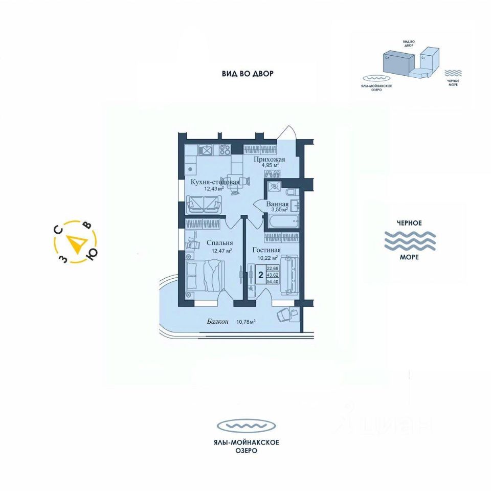 Общая площадь54,4 м²