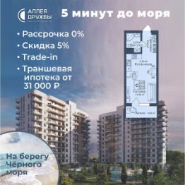 ЗВОНИТЕ ПРЯМО СЕЙЧАС, ЧТОБЫ ПОЛУЧИТЬ ВЫГОДУ ДО 650 000 руб! Цена указана со скидкой 5% при условии 100% оплаты либо ипотека. АКЦИИ: * Ипотека от 14,7% * ТРАНШЕВАЯ ИПОТЕКА - ПВ от 20%, платежи от 31000 в месяц * Рассрочка 0% до 2028г. ПВ от 20% * Скидка 5% * Бронь на 30 дней * 5 мин до моря пешком, планировки от 30 кв.м. * Высота потолков 3 м , предчистовая и чистовая отделка * Ипотека от СБЕРБАНКА * Доходность инвестиций от 30% годовых. * Сдача в аренду от управляющей компании (доверительное управление) позволяет получать доход от сдачи апартаментов без вашего участия * Безопасная сделка по ФЗ-214/эскроу-счёта "Аллея Дружбы" — это комплекс апартаментов бизнес-класса в Евпатории, расположенный в 5 минутах прогулки от золотистых пляжей Чёрного моря. Два современных 12-этажных корпуса с панорамными видами на море объединены стильным стилобатом с центральным входом и бутиковыми retail-площадями, а закрытая территория и подземный паркинг обеспечивает приватность и безопасность. АРХИТЕКТУРА И КОНСТРУКТИВНЫЕ ОСОБЕННОСТИ: • 12-этажное здание в авторском архитектурном стиле • Высота потолков (от 2,9 м до 3,1 м) • Эксклюзивное решение для первых этажей (высота потолков 3,4м) • Евро планировки с террасами и гардеробными • Панорамное ламинированное остекление • Индивидуальные келлеры • Видовые лоты на море • Высокоскоростные лифты по концепции 5* отеля • Предусмотрено резервное электроснабжение • По проекту предусмотрено место для кондиционера и практическое решение для маскировки коммуникаций ЛОКАЦИЯ И ОКРУЖЕНИЕ: • До центра Евпатории - 7 минут на машине • Пляж - всего 5 минут пешком • Рядом с комплексом развитая инфраструктура (рестораны, магазины, кафе, медицинские учреждения, санатории) ГОСТЕПРИИМСТВО И БЕЗУПРЕЧНЫЕ СЕРВИСЫ: • Управляющая компания премиум-класса • Консъерж-сервис 24/7 • Доставки продуктов и готовой еды • Зона ресепшн оформлена в стилистике комплекса • Лобби с атмосферным кафе и зонами для чтения • Премиальное решение для мест общего пользования • Интерактивная детская комната для самых маленьких • Пункты выдачи товаров от маркетплейсов • Гостевые парковочные места • Организовано место для хранения колясок ваших малышей • Ремонт на выбор "Комфорт-формат" и "Гранд-формат" БЕЗОПАСНОСТЬ И ТЕХНОЛОГИИ СПОКОЙСТВИЯ: • Закрытая территория, двор без машин • Система контроля доступа (строго по электронным пропускам) • Подземный паркинг с тремя типами машиномест • Выделенные места для велосипедов • Камеры видеонаблюдения • Круглосуточный ресепшн • Телеметрия - автоматический сбор и передача данных с приборов учета апартамента минимизирует ошибки и мошенничество • Система умного апартамента с дистанционным управлением БЛАГОУСТРОЙСТВО ТЕРРИТОРИИ: • Ландшафтный дизайн по проекту (2 334 м² озеленения) • Прогулочные аллеи и зоны отдыха для расслабления и медитации • Коворкинг-зоны с высокоскоростным Wi-Fi для бизнес-переговоров • Детские и спортивные площадки • В апарт-комплексе вас ждут мини-маркет и магазин повседневных товаров