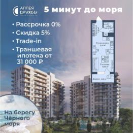 ЗВОНИТЕ ПРЯМО СЕЙЧАС, ЧТОБЫ ПОЛУЧИТЬ ВЫГОДУ ДО 650 000 руб! Цена указана со скидкой 5% при условии 100% оплаты либо ипотека. АКЦИИ: * Ипотека от 14,7% * ТРАНШЕВАЯ ИПОТЕКА - ПВ от 20%, платежи от 31000 в месяц * Рассрочка 0% до 2028г. ПВ от 20% * Скидка 5% * Бронь на 30 дней * 5 мин до моря пешком, планировки от 30 кв.м. * Высота потолков 3 м , предчистовая и чистовая отделка * Ипотека от СБЕРБАНКА * Доходность инвестиций от 30% годовых. * Сдача в аренду от управляющей компании (доверительное управление) позволяет получать доход от сдачи апартаментов без вашего участия * Безопасная сделка по ФЗ-214/эскроу-счёта "Аллея Дружбы" — это комплекс апартаментов бизнес-класса в Евпатории, расположенный в 5 минутах прогулки от золотистых пляжей Чёрного моря. Два современных 12-этажных корпуса с панорамными видами на море объединены стильным стилобатом с центральным входом и бутиковыми retail-площадями, а закрытая территория и подземный паркинг обеспечивает приватность и безопасность. АРХИТЕКТУРА И КОНСТРУКТИВНЫЕ ОСОБЕННОСТИ: • 12-этажное здание в авторском архитектурном стиле • Высота потолков (от 2,9 м до 3,1 м) • Эксклюзивное решение для первых этажей (высота потолков 3,4м) • Евро планировки с террасами и гардеробными • Панорамное ламинированное остекление • Индивидуальные келлеры • Видовые лоты на море • Высокоскоростные лифты по концепции 5* отеля • Предусмотрено резервное электроснабжение • По проекту предусмотрено место для кондиционера и практическое решение для маскировки коммуникаций ЛОКАЦИЯ И ОКРУЖЕНИЕ: • До центра Евпатории - 7 минут на машине • Пляж - всего 5 минут пешком • Рядом с комплексом развитая инфраструктура (рестораны, магазины, кафе, медицинские учреждения, санатории) ГОСТЕПРИИМСТВО И БЕЗУПРЕЧНЫЕ СЕРВИСЫ: • Управляющая компания премиум-класса • Консъерж-сервис 24/7 • Доставки продуктов и готовой еды • Зона ресепшн оформлена в стилистике комплекса • Лобби с атмосферным кафе и зонами для чтения • Премиальное решение для мест общего пользования • Интерактивная детская комната для самых маленьких • Пункты выдачи товаров от маркетплейсов • Гостевые парковочные места • Организовано место для хранения колясок ваших малышей • Ремонт на выбор "Комфорт-формат" и "Гранд-формат" БЕЗОПАСНОСТЬ И ТЕХНОЛОГИИ СПОКОЙСТВИЯ: • Закрытая территория, двор без машин • Система контроля доступа (строго по электронным пропускам) • Подземный паркинг с тремя типами машиномест • Выделенные места для велосипедов • Камеры видеонаблюдения • Круглосуточный ресепшн • Телеметрия - автоматический сбор и передача данных с приборов учета апартамента минимизирует ошибки и мошенничество • Система умного апартамента с дистанционным управлением БЛАГОУСТРОЙСТВО ТЕРРИТОРИИ: • Ландшафтный дизайн по проекту (2 334 м² озеленения) • Прогулочные аллеи и зоны отдыха для расслабления и медитации • Коворкинг-зоны с высокоскоростным Wi-Fi для бизнес-переговоров • Детские и спортивные площадки • В апарт-комплексе вас ждут мини-маркет и магазин повседневных товаров