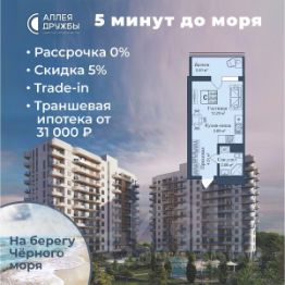 ЗВОНИТЕ ПРЯМО СЕЙЧАС, ЧТОБЫ ПОЛУЧИТЬ ВЫГОДУ ДО 650 000 руб! Цена указана со скидкой 5% при условии 100% оплаты либо ипотека. АКЦИИ: * Ипотека от 14,7% * ТРАНШЕВАЯ ИПОТЕКА - ПВ от 20%, платежи от 31000 в месяц * Рассрочка 0% до 2028г. ПВ от 20% * Скидка 5% * Бронь на 30 дней * 5 мин до моря пешком, планировки от 30 кв.м. * Высота потолков 3 м , предчистовая и чистовая отделка * Ипотека от СБЕРБАНКА * Доходность инвестиций от 30% годовых. * Сдача в аренду от управляющей компании (доверительное управление) позволяет получать доход от сдачи апартаментов без вашего участия * Безопасная сделка по ФЗ-214/эскроу-счёта "Аллея Дружбы" — это комплекс апартаментов бизнес-класса в Евпатории, расположенный в 5 минутах прогулки от золотистых пляжей Чёрного моря. Два современных 12-этажных корпуса с панорамными видами на море объединены стильным стилобатом с центральным входом и бутиковыми retail-площадями, а закрытая территория и подземный паркинг обеспечивает приватность и безопасность. АРХИТЕКТУРА И КОНСТРУКТИВНЫЕ ОСОБЕННОСТИ: • 12-этажное здание в авторском архитектурном стиле • Высота потолков (от 2,9 м до 3,1 м) • Эксклюзивное решение для первых этажей (высота потолков 3,4м) • Евро планировки с террасами и гардеробными • Панорамное ламинированное остекление • Индивидуальные келлеры • Видовые лоты на море • Высокоскоростные лифты по концепции 5* отеля • Предусмотрено резервное электроснабжение • По проекту предусмотрено место для кондиционера и практическое решение для маскировки коммуникаций ЛОКАЦИЯ И ОКРУЖЕНИЕ: • До центра Евпатории - 7 минут на машине • Пляж - всего 5 минут пешком • Рядом с комплексом развитая инфраструктура (рестораны, магазины, кафе, медицинские учреждения, санатории) ГОСТЕПРИИМСТВО И БЕЗУПРЕЧНЫЕ СЕРВИСЫ: • Управляющая компания премиум-класса • Консъерж-сервис 24/7 • Доставки продуктов и готовой еды • Зона ресепшн оформлена в стилистике комплекса • Лобби с атмосферным кафе и зонами для чтения • Премиальное решение для мест общего пользования • Интерактивная детская комната для самых маленьких • Пункты выдачи товаров от маркетплейсов • Гостевые парковочные места • Организовано место для хранения колясок ваших малышей • Ремонт на выбор "Комфорт-формат" и "Гранд-формат" БЕЗОПАСНОСТЬ И ТЕХНОЛОГИИ СПОКОЙСТВИЯ: • Закрытая территория, двор без машин • Система контроля доступа (строго по электронным пропускам) • Подземный паркинг с тремя типами машиномест • Выделенные места для велосипедов • Камеры видеонаблюдения • Круглосуточный ресепшн • Телеметрия - автоматический сбор и передача данных с приборов учета апартамента минимизирует ошибки и мошенничество • Система умного апартамента с дистанционным управлением БЛАГОУСТРОЙСТВО ТЕРРИТОРИИ: • Ландшафтный дизайн по проекту (2 334 м² озеленения) • Прогулочные аллеи и зоны отдыха для расслабления и медитации • Коворкинг-зоны с высокоскоростным Wi-Fi для бизнес-переговоров • Детские и спортивные площадки • В апарт-комплексе вас ждут мини-маркет и магазин повседневных товаров