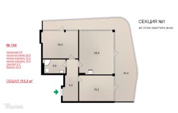 Общей площадью 113,3 кв.м. Видео вышлю по запросу.