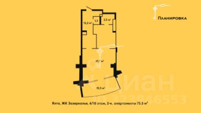 Дизайнерские 2-к. апартаменты площадью 75 м² с современным ремонтом, расположеные на четвертом этаже 18-этажного многофункционального комплекса "Зазеркалье", всего в 4 минутах пешей прогулки от пляжа и 7 минутах от набережной Ялты.