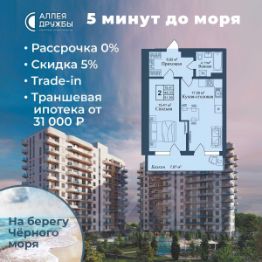 ЗВОНИТЕ ПРЯМО СЕЙЧАС, ЧТОБЫ ПОЛУЧИТЬ ВЫГОДУ ДО 650 000 руб! Цена указана со скидкой 5% при условии 100% оплаты либо ипотека. АКЦИИ: * Ипотека от 14,7% * ТРАНШЕВАЯ ИПОТЕКА - ПВ от 20%, платежи от 31000 в месяц * Рассрочка 0% до 2028г. ПВ от 20% * Скидка 5% * Бронь на 30 дней * 5 мин до моря пешком, планировки от 30 кв.м. * Высота потолков 3 м , предчистовая и чистовая отделка * Ипотека от СБЕРБАНКА * Доходность инвестиций от 30% годовых. * Сдача в аренду от управляющей компании (доверительное управление) позволяет получать доход от сдачи апартаментов без вашего участия * Безопасная сделка по ФЗ-214/эскроу-счёта "Аллея Дружбы" — это комплекс апартаментов бизнес-класса в Евпатории, расположенный в 5 минутах прогулки от золотистых пляжей Чёрного моря. Два современных 12-этажных корпуса с панорамными видами на море объединены стильным стилобатом с центральным входом и бутиковыми retail-площадями, а закрытая территория и подземный паркинг обеспечивает приватность и безопасность. АРХИТЕКТУРА И КОНСТРУКТИВНЫЕ ОСОБЕННОСТИ: • 12-этажное здание в авторском архитектурном стиле • Высота потолков (от 2,9 м до 3,1 м) • Эксклюзивное решение для первых этажей (высота потолков 3,4м) • Евро планировки с террасами и гардеробными • Панорамное ламинированное остекление • Индивидуальные келлеры • Видовые лоты на море • Высокоскоростные лифты по концепции 5* отеля • Предусмотрено резервное электроснабжение • По проекту предусмотрено место для кондиционера и практическое решение для маскировки коммуникаций ЛОКАЦИЯ И ОКРУЖЕНИЕ: • До центра Евпатории - 7 минут на машине • Пляж - всего 5 минут пешком • Рядом с комплексом развитая инфраструктура (рестораны, магазины, кафе, медицинские учреждения, санатории) ГОСТЕПРИИМСТВО И БЕЗУПРЕЧНЫЕ СЕРВИСЫ: • Управляющая компания премиум-класса • Консъерж-сервис 24/7 • Доставки продуктов и готовой еды • Зона ресепшн оформлена в стилистике комплекса • Лобби с атмосферным кафе и зонами для чтения • Премиальное решение для мест общего пользования • Интерактивная детская комната для самых маленьких • Пункты выдачи товаров от маркетплейсов • Гостевые парковочные места • Организовано место для хранения колясок ваших малышей • Ремонт на выбор "Комфорт-формат" и "Гранд-формат" БЕЗОПАСНОСТЬ И ТЕХНОЛОГИИ СПОКОЙСТВИЯ: • Закрытая территория, двор без машин • Система контроля доступа (строго по электронным пропускам) • Подземный паркинг с тремя типами машиномест • Выделенные места для велосипедов • Камеры видеонаблюдения • Круглосуточный ресепшн • Телеметрия - автоматический сбор и передача данных с приборов учета апартамента минимизирует ошибки и мошенничество • Система умного апартамента с дистанционным управлением БЛАГОУСТРОЙСТВО ТЕРРИТОРИИ: • Ландшафтный дизайн по проекту (2 334 м² озеленения) • Прогулочные аллеи и зоны отдыха для расслабления и медитации • Коворкинг-зоны с высокоскоростным Wi-Fi для бизнес-переговоров • Детские и спортивные площадки • В апарт-комплексе вас ждут мини-маркет и магазин повседневных товаров