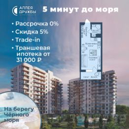 ЗВОНИТЕ ПРЯМО СЕЙЧАС, ЧТОБЫ ПОЛУЧИТЬ ВЫГОДУ ДО 650 000 руб! Цена указана со скидкой 5% при условии 100% оплаты либо ипотека. АКЦИИ: * Ипотека от 14,7% * ТРАНШЕВАЯ ИПОТЕКА - ПВ от 20%, платежи от 31000 в месяц * Рассрочка 0% до 2028г. ПВ от 20% * Скидка 5% * Бронь на 30 дней * 5 мин до моря пешком, планировки от 30 кв.м. * Высота потолков 3 м , предчистовая и чистовая отделка * Ипотека от СБЕРБАНКА * Доходность инвестиций от 30% годовых. * Сдача в аренду от управляющей компании (доверительное управление) позволяет получать доход от сдачи апартаментов без вашего участия * Безопасная сделка по ФЗ-214/эскроу-счёта "Аллея Дружбы" — это комплекс апартаментов бизнес-класса в Евпатории, расположенный в 5 минутах прогулки от золотистых пляжей Чёрного моря. Два современных 12-этажных корпуса с панорамными видами на море объединены стильным стилобатом с центральным входом и бутиковыми retail-площадями, а закрытая территория и подземный паркинг обеспечивает приватность и безопасность. АРХИТЕКТУРА И КОНСТРУКТИВНЫЕ ОСОБЕННОСТИ: • 12-этажное здание в авторском архитектурном стиле • Высота потолков (от 2,9 м до 3,1 м) • Эксклюзивное решение для первых этажей (высота потолков 3,4м) • Евро планировки с террасами и гардеробными • Панорамное ламинированное остекление • Индивидуальные келлеры • Видовые лоты на море • Высокоскоростные лифты по концепции 5* отеля • Предусмотрено резервное электроснабжение • По проекту предусмотрено место для кондиционера и практическое решение для маскировки коммуникаций ЛОКАЦИЯ И ОКРУЖЕНИЕ: • До центра Евпатории - 7 минут на машине • Пляж - всего 5 минут пешком • Рядом с комплексом развитая инфраструктура (рестораны, магазины, кафе, медицинские учреждения, санатории) ГОСТЕПРИИМСТВО И БЕЗУПРЕЧНЫЕ СЕРВИСЫ: • Управляющая компания премиум-класса • Консъерж-сервис 24/7 • Доставки продуктов и готовой еды • Зона ресепшн оформлена в стилистике комплекса • Лобби с атмосферным кафе и зонами для чтения • Премиальное решение для мест общего пользования • Интерактивная детская комната для самых маленьких • Пункты выдачи товаров от маркетплейсов • Гостевые парковочные места • Организовано место для хранения колясок ваших малышей • Ремонт на выбор "Комфорт-формат" и "Гранд-формат" БЕЗОПАСНОСТЬ И ТЕХНОЛОГИИ СПОКОЙСТВИЯ: • Закрытая территория, двор без машин • Система контроля доступа (строго по электронным пропускам) • Подземный паркинг с тремя типами машиномест • Выделенные места для велосипедов • Камеры видеонаблюдения • Круглосуточный ресепшн • Телеметрия - автоматический сбор и передача данных с приборов учета апартамента минимизирует ошибки и мошенничество • Система умного апартамента с дистанционным управлением БЛАГОУСТРОЙСТВО ТЕРРИТОРИИ: • Ландшафтный дизайн по проекту (2 334 м² озеленения) • Прогулочные аллеи и зоны отдыха для расслабления и медитации • Коворкинг-зоны с высокоскоростным Wi-Fi для бизнес-переговоров • Детские и спортивные площадки • В апарт-комплексе вас ждут мини-маркет и магазин повседневных товаров