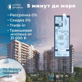 ЗВОНИТЕ ПРЯМО СЕЙЧАС, ЧТОБЫ ПОЛУЧИТЬ ВЫГОДУ ДО 650 000 руб! Цена указана со скидкой 5% при условии 100% оплаты либо ипотека. АКЦИИ: * Ипотека от 14,7% * ТРАНШЕВАЯ ИПОТЕКА - ПВ от 20%, платежи от 31000 в месяц * Рассрочка 0% до 2028г. ПВ от 20% * Скидка 5% * Бронь на 30 дней * 5 мин до моря пешком, планировки от 30 кв.м. * Высота потолков 3 м , предчистовая и чистовая отделка * Ипотека от СБЕРБАНКА * Доходность инвестиций от 30% годовых. * Сдача в аренду от управляющей компании (доверительное управление) позволяет получать доход от сдачи апартаментов без вашего участия * Безопасная сделка по ФЗ-214/эскроу-счёта "Аллея Дружбы" — это комплекс апартаментов бизнес-класса в Евпатории, расположенный в 5 минутах прогулки от золотистых пляжей Чёрного моря. Два современных 12-этажных корпуса с панорамными видами на море объединены стильным стилобатом с центральным входом и бутиковыми retail-площадями, а закрытая территория и подземный паркинг обеспечивает приватность и безопасность. АРХИТЕКТУРА И КОНСТРУКТИВНЫЕ ОСОБЕННОСТИ: • 12-этажное здание в авторском архитектурном стиле • Высота потолков (от 2,9 м до 3,1 м) • Эксклюзивное решение для первых этажей (высота потолков 3,4м) • Евро планировки с террасами и гардеробными • Панорамное ламинированное остекление • Индивидуальные келлеры • Видовые лоты на море • Высокоскоростные лифты по концепции 5* отеля • Предусмотрено резервное электроснабжение • По проекту предусмотрено место для кондиционера и практическое решение для маскировки коммуникаций ЛОКАЦИЯ И ОКРУЖЕНИЕ: • До центра Евпатории - 7 минут на машине • Пляж - всего 5 минут пешком • Рядом с комплексом развитая инфраструктура (рестораны, магазины, кафе, медицинские учреждения, санатории) ГОСТЕПРИИМСТВО И БЕЗУПРЕЧНЫЕ СЕРВИСЫ: • Управляющая компания премиум-класса • Консъерж-сервис 24/7 • Доставки продуктов и готовой еды • Зона ресепшн оформлена в стилистике комплекса • Лобби с атмосферным кафе и зонами для чтения • Премиальное решение для мест общего пользования • Интерактивная детская комната для самых маленьких • Пункты выдачи товаров от маркетплейсов • Гостевые парковочные места • Организовано место для хранения колясок ваших малышей • Ремонт на выбор "Комфорт-формат" и "Гранд-формат" БЕЗОПАСНОСТЬ И ТЕХНОЛОГИИ СПОКОЙСТВИЯ: • Закрытая территория, двор без машин • Система контроля доступа (строго по электронным пропускам) • Подземный паркинг с тремя типами машиномест • Выделенные места для велосипедов • Камеры видеонаблюдения • Круглосуточный ресепшн • Телеметрия - автоматический сбор и передача данных с приборов учета апартамента минимизирует ошибки и мошенничество • Система умного апартамента с дистанционным управлением БЛАГОУСТРОЙСТВО ТЕРРИТОРИИ: • Ландшафтный дизайн по проекту (2 334 м² озеленения) • Прогулочные аллеи и зоны отдыха для расслабления и медитации • Коворкинг-зоны с высокоскоростным Wi-Fi для бизнес-переговоров • Детские и спортивные площадки • В апарт-комплексе вас ждут мини-маркет и магазин повседневных товаров
