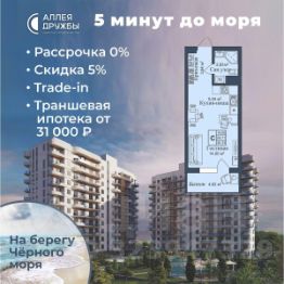 ЗВОНИТЕ ПРЯМО СЕЙЧАС, ЧТОБЫ ПОЛУЧИТЬ ВЫГОДУ ДО 650 000 руб! Цена указана со скидкой 5% при условии 100% оплаты либо ипотека. АКЦИИ: * Ипотека от 14,7% * ТРАНШЕВАЯ ИПОТЕКА - ПВ от 20%, платежи от 31000 в месяц * Рассрочка 0% до 2028г. ПВ от 20% * Скидка 5% * Бронь на 30 дней * 5 мин до моря пешком, планировки от 30 кв.м. * Высота потолков 3 м , предчистовая и чистовая отделка * Ипотека от СБЕРБАНКА * Доходность инвестиций от 30% годовых. * Сдача в аренду от управляющей компании (доверительное управление) позволяет получать доход от сдачи апартаментов без вашего участия * Безопасная сделка по ФЗ-214/эскроу-счёта "Аллея Дружбы" — это комплекс апартаментов бизнес-класса в Евпатории, расположенный в 5 минутах прогулки от золотистых пляжей Чёрного моря. Два современных 12-этажных корпуса с панорамными видами на море объединены стильным стилобатом с центральным входом и бутиковыми retail-площадями, а закрытая территория и подземный паркинг обеспечивает приватность и безопасность. АРХИТЕКТУРА И КОНСТРУКТИВНЫЕ ОСОБЕННОСТИ: • 12-этажное здание в авторском архитектурном стиле • Высота потолков (от 2,9 м до 3,1 м) • Эксклюзивное решение для первых этажей (высота потолков 3,4м) • Евро планировки с террасами и гардеробными • Панорамное ламинированное остекление • Индивидуальные келлеры • Видовые лоты на море • Высокоскоростные лифты по концепции 5* отеля • Предусмотрено резервное электроснабжение • По проекту предусмотрено место для кондиционера и практическое решение для маскировки коммуникаций ЛОКАЦИЯ И ОКРУЖЕНИЕ: • До центра Евпатории - 7 минут на машине • Пляж - всего 5 минут пешком • Рядом с комплексом развитая инфраструктура (рестораны, магазины, кафе, медицинские учреждения, санатории) ГОСТЕПРИИМСТВО И БЕЗУПРЕЧНЫЕ СЕРВИСЫ: • Управляющая компания премиум-класса • Консъерж-сервис 24/7 • Доставки продуктов и готовой еды • Зона ресепшн оформлена в стилистике комплекса • Лобби с атмосферным кафе и зонами для чтения • Премиальное решение для мест общего пользования • Интерактивная детская комната для самых маленьких • Пункты выдачи товаров от маркетплейсов • Гостевые парковочные места • Организовано место для хранения колясок ваших малышей • Ремонт на выбор "Комфорт-формат" и "Гранд-формат" БЕЗОПАСНОСТЬ И ТЕХНОЛОГИИ СПОКОЙСТВИЯ: • Закрытая территория, двор без машин • Система контроля доступа (строго по электронным пропускам) • Подземный паркинг с тремя типами машиномест • Выделенные места для велосипедов • Камеры видеонаблюдения • Круглосуточный ресепшн • Телеметрия - автоматический сбор и передача данных с приборов учета апартамента минимизирует ошибки и мошенничество • Система умного апартамента с дистанционным управлением БЛАГОУСТРОЙСТВО ТЕРРИТОРИИ: • Ландшафтный дизайн по проекту (2 334 м² озеленения) • Прогулочные аллеи и зоны отдыха для расслабления и медитации • Коворкинг-зоны с высокоскоростным Wi-Fi для бизнес-переговоров • Детские и спортивные площадки • В апарт-комплексе вас ждут мини-маркет и магазин повседневных товаров