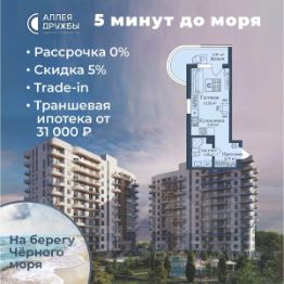ЗВОНИТЕ ПРЯМО СЕЙЧАС, ЧТОБЫ ПОЛУЧИТЬ ВЫГОДУ ДО 650 000 руб! Цена указана со скидкой 5% при условии 100% оплаты либо ипотека. АКЦИИ: * Ипотека от 14,7% * ТРАНШЕВАЯ ИПОТЕКА - ПВ от 20%, платежи от 31000 в месяц * Рассрочка 0% до 2028г. ПВ от 20% * Скидка 5% * Бронь на 30 дней * 5 мин до моря пешком, планировки от 30 кв.м. * Высота потолков 3 м , предчистовая и чистовая отделка * Ипотека от СБЕРБАНКА * Доходность инвестиций от 30% годовых. * Сдача в аренду от управляющей компании (доверительное управление) позволяет получать доход от сдачи апартаментов без вашего участия * Безопасная сделка по ФЗ-214/эскроу-счёта "Аллея Дружбы" — это комплекс апартаментов бизнес-класса в Евпатории, расположенный в 5 минутах прогулки от золотистых пляжей Чёрного моря. Два современных 12-этажных корпуса с панорамными видами на море объединены стильным стилобатом с центральным входом и бутиковыми retail-площадями, а закрытая территория и подземный паркинг обеспечивает приватность и безопасность. АРХИТЕКТУРА И КОНСТРУКТИВНЫЕ ОСОБЕННОСТИ: • 12-этажное здание в авторском архитектурном стиле • Высота потолков (от 2,9 м до 3,1 м) • Эксклюзивное решение для первых этажей (высота потолков 3,4м) • Евро планировки с террасами и гардеробными • Панорамное ламинированное остекление • Индивидуальные келлеры • Видовые лоты на море • Высокоскоростные лифты по концепции 5* отеля • Предусмотрено резервное электроснабжение • По проекту предусмотрено место для кондиционера и практическое решение для маскировки коммуникаций ЛОКАЦИЯ И ОКРУЖЕНИЕ: • До центра Евпатории - 7 минут на машине • Пляж - всего 5 минут пешком • Рядом с комплексом развитая инфраструктура (рестораны, магазины, кафе, медицинские учреждения, санатории) ГОСТЕПРИИМСТВО И БЕЗУПРЕЧНЫЕ СЕРВИСЫ: • Управляющая компания премиум-класса • Консъерж-сервис 24/7 • Доставки продуктов и готовой еды • Зона ресепшн оформлена в стилистике комплекса • Лобби с атмосферным кафе и зонами для чтения • Премиальное решение для мест общего пользования • Интерактивная детская комната для самых маленьких • Пункты выдачи товаров от маркетплейсов • Гостевые парковочные места • Организовано место для хранения колясок ваших малышей • Ремонт на выбор "Комфорт-формат" и "Гранд-формат" БЕЗОПАСНОСТЬ И ТЕХНОЛОГИИ СПОКОЙСТВИЯ: • Закрытая территория, двор без машин • Система контроля доступа (строго по электронным пропускам) • Подземный паркинг с тремя типами машиномест • Выделенные места для велосипедов • Камеры видеонаблюдения • Круглосуточный ресепшн • Телеметрия - автоматический сбор и передача данных с приборов учета апартамента минимизирует ошибки и мошенничество • Система умного апартамента с дистанционным управлением БЛАГОУСТРОЙСТВО ТЕРРИТОРИИ: • Ландшафтный дизайн по проекту (2 334 м² озеленения) • Прогулочные аллеи и зоны отдыха для расслабления и медитации • Коворкинг-зоны с высокоскоростным Wi-Fi для бизнес-переговоров • Детские и спортивные площадки • В апарт-комплексе вас ждут мини-маркет и магазин повседневных товаров
