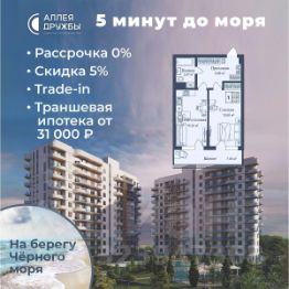 ЗВОНИТЕ ПРЯМО СЕЙЧАС, ЧТОБЫ ПОЛУЧИТЬ ВЫГОДУ ДО 650 000 руб! Цена указана со скидкой 5% при условии 100% оплаты либо ипотека. АКЦИИ: * Ипотека от 14,7% * ТРАНШЕВАЯ ИПОТЕКА - ПВ от 20%, платежи от 31000 в месяц * Рассрочка 0% до 2028г. ПВ от 20% * Скидка 5% * Бронь на 30 дней * 5 мин до моря пешком, планировки от 30 кв.м. * Высота потолков 3 м , предчистовая и чистовая отделка * Ипотека от СБЕРБАНКА * Доходность инвестиций от 30% годовых. * Сдача в аренду от управляющей компании (доверительное управление) позволяет получать доход от сдачи апартаментов без вашего участия * Безопасная сделка по ФЗ-214/эскроу-счёта "Аллея Дружбы" — это комплекс апартаментов бизнес-класса в Евпатории, расположенный в 5 минутах прогулки от золотистых пляжей Чёрного моря. Два современных 12-этажных корпуса с панорамными видами на море объединены стильным стилобатом с центральным входом и бутиковыми retail-площадями, а закрытая территория и подземный паркинг обеспечивает приватность и безопасность. АРХИТЕКТУРА И КОНСТРУКТИВНЫЕ ОСОБЕННОСТИ: • 12-этажное здание в авторском архитектурном стиле • Высота потолков (от 2,9 м до 3,1 м) • Эксклюзивное решение для первых этажей (высота потолков 3,4м) • Евро планировки с террасами и гардеробными • Панорамное ламинированное остекление • Индивидуальные келлеры • Видовые лоты на море • Высокоскоростные лифты по концепции 5* отеля • Предусмотрено резервное электроснабжение • По проекту предусмотрено место для кондиционера и практическое решение для маскировки коммуникаций ЛОКАЦИЯ И ОКРУЖЕНИЕ: • До центра Евпатории - 7 минут на машине • Пляж - всего 5 минут пешком • Рядом с комплексом развитая инфраструктура (рестораны, магазины, кафе, медицинские учреждения, санатории) ГОСТЕПРИИМСТВО И БЕЗУПРЕЧНЫЕ СЕРВИСЫ: • Управляющая компания премиум-класса • Консъерж-сервис 24/7 • Доставки продуктов и готовой еды • Зона ресепшн оформлена в стилистике комплекса • Лобби с атмосферным кафе и зонами для чтения • Премиальное решение для мест общего пользования • Интерактивная детская комната для самых маленьких • Пункты выдачи товаров от маркетплейсов • Гостевые парковочные места • Организовано место для хранения колясок ваших малышей • Ремонт на выбор "Комфорт-формат" и "Гранд-формат" БЕЗОПАСНОСТЬ И ТЕХНОЛОГИИ СПОКОЙСТВИЯ: • Закрытая территория, двор без машин • Система контроля доступа (строго по электронным пропускам) • Подземный паркинг с тремя типами машиномест • Выделенные места для велосипедов • Камеры видеонаблюдения • Круглосуточный ресепшн • Телеметрия - автоматический сбор и передача данных с приборов учета апартамента минимизирует ошибки и мошенничество • Система умного апартамента с дистанционным управлением БЛАГОУСТРОЙСТВО ТЕРРИТОРИИ: • Ландшафтный дизайн по проекту (2 334 м² озеленения) • Прогулочные аллеи и зоны отдыха для расслабления и медитации • Коворкинг-зоны с высокоскоростным Wi-Fi для бизнес-переговоров • Детские и спортивные площадки • В апарт-комплексе вас ждут мини-маркет и магазин повседневных товаров
