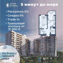 ЗВОНИТЕ ПРЯМО СЕЙЧАС, ЧТОБЫ ПОЛУЧИТЬ ВЫГОДУ ДО 650 000 руб! Цена указана со скидкой 5% при условии 100% оплаты либо ипотека. АКЦИИ: * Ипотека от 14,7% * ТРАНШЕВАЯ ИПОТЕКА - ПВ от 20%, платежи от 31000 в месяц * Рассрочка 0% до 2028г. ПВ от 20% * Скидка 5% * Бронь на 30 дней * 5 мин до моря пешком, планировки от 30 кв.м. * Высота потолков 3 м , предчистовая и чистовая отделка * Ипотека от СБЕРБАНКА * Доходность инвестиций от 30% годовых. * Сдача в аренду от управляющей компании (доверительное управление) позволяет получать доход от сдачи апартаментов без вашего участия * Безопасная сделка по ФЗ-214/эскроу-счёта "Аллея Дружбы" — это комплекс апартаментов бизнес-класса в Евпатории, расположенный в 5 минутах прогулки от золотистых пляжей Чёрного моря. Два современных 12-этажных корпуса с панорамными видами на море объединены стильным стилобатом с центральным входом и бутиковыми retail-площадями, а закрытая территория и подземный паркинг обеспечивает приватность и безопасность. АРХИТЕКТУРА И КОНСТРУКТИВНЫЕ ОСОБЕННОСТИ: • 12-этажное здание в авторском архитектурном стиле • Высота потолков (от 2,9 м до 3,1 м) • Эксклюзивное решение для первых этажей (высота потолков 3,4м) • Евро планировки с террасами и гардеробными • Панорамное ламинированное остекление • Индивидуальные келлеры • Видовые лоты на море • Высокоскоростные лифты по концепции 5* отеля • Предусмотрено резервное электроснабжение • По проекту предусмотрено место для кондиционера и практическое решение для маскировки коммуникаций ЛОКАЦИЯ И ОКРУЖЕНИЕ: • До центра Евпатории - 7 минут на машине • Пляж - всего 5 минут пешком • Рядом с комплексом развитая инфраструктура (рестораны, магазины, кафе, медицинские учреждения, санатории) ГОСТЕПРИИМСТВО И БЕЗУПРЕЧНЫЕ СЕРВИСЫ: • Управляющая компания премиум-класса • Консъерж-сервис 24/7 • Доставки продуктов и готовой еды • Зона ресепшн оформлена в стилистике комплекса • Лобби с атмосферным кафе и зонами для чтения • Премиальное решение для мест общего пользования • Интерактивная детская комната для самых маленьких • Пункты выдачи товаров от маркетплейсов • Гостевые парковочные места • Организовано место для хранения колясок ваших малышей • Ремонт на выбор "Комфорт-формат" и "Гранд-формат" БЕЗОПАСНОСТЬ И ТЕХНОЛОГИИ СПОКОЙСТВИЯ: • Закрытая территория, двор без машин • Система контроля доступа (строго по электронным пропускам) • Подземный паркинг с тремя типами машиномест • Выделенные места для велосипедов • Камеры видеонаблюдения • Круглосуточный ресепшн • Телеметрия - автоматический сбор и передача данных с приборов учета апартамента минимизирует ошибки и мошенничество • Система умного апартамента с дистанционным управлением БЛАГОУСТРОЙСТВО ТЕРРИТОРИИ: • Ландшафтный дизайн по проекту (2 334 м² озеленения) • Прогулочные аллеи и зоны отдыха для расслабления и медитации • Коворкинг-зоны с высокоскоростным Wi-Fi для бизнес-переговоров • Детские и спортивные площадки • В апарт-комплексе вас ждут мини-маркет и магазин повседневных товаров