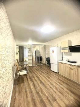 Общая площадь квартиры составляет 74 м². Высота потолков 3 м. Квартира разделена на две самостоятельные студии по 37 кв.м.Сделан хороший современный ремонт. Все укомплектовано мебелью и техникой.
