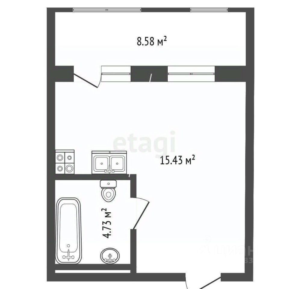 Студия площадью 33.1 м².