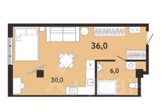 Общая площадь — 36 м²: просторная жилая зона 26 м², аккуратная прихожая 4 м² и современный оборудованный санузел 6 м².