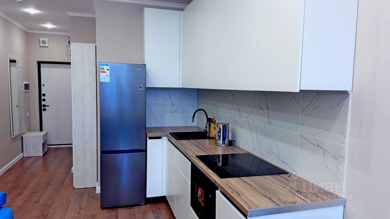 В студии полностью оборудована кухня (холодильник, СВЧ-печь, варочная поверхность), санузел, установлен кондиционер, горячая вода и центральное отопление от крышной газовой котельной. Дизайн и меблировка являются примером возможного оформления этой студии.