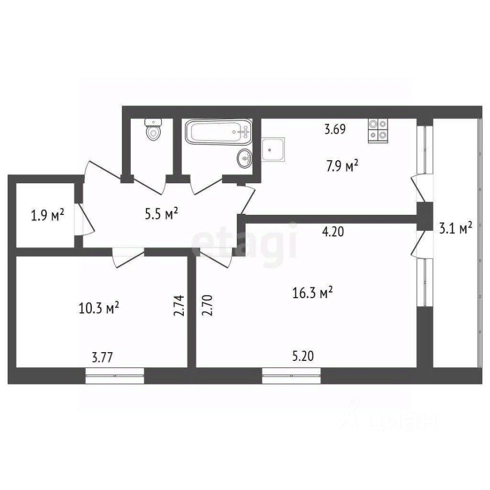 Предлагается 2-комнатная квартира 44.2 кв.м. в селе Вилино!