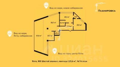 Продается роскошный пентхаус с видом на море в ЖК "Шестой элемент", расположенный в самом сердце Ялты. Панорамный вид на море и город, который захватывает дух. Настоящая мечта.