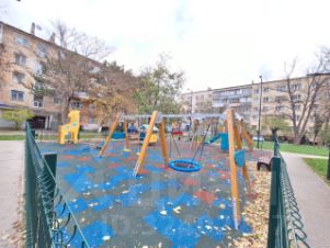 Двор тихий и зелёный, есть спортивная и детская площадка.