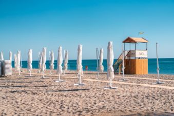 Инфраструктура: пляж — 1 минута , бассейн с детской зоной и гидромассажем , ресторан и деткафе , тренажёрный зал, детплощадка, закрытая территория без машин, видеонаблюдение, смарткарты. Курорт САГА — западное побережье Крыма, на косе между Чёрным морем и розовым озером Сасык-Сиваш: чистый воздух и красивые закаты.