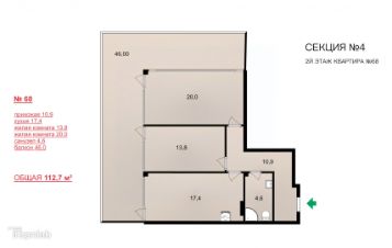 Общей площадью 112,7 кв.м. Видео вышлю по запросу.