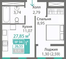 Продаётся 1-комнатная квартира в строящемся доме (Дом 2 (Секции Т2.1, Т2, К3КП1)), срок сдачи: I-кв. 2029, общей площадью 27.85 кв.м., на 9 этаже. Новый жилой комплекс "Благо" от застройщика "Монолит" расположен по адресу: Республика Крым, Симферопольский район, село Перово