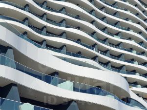 Авторы проекта создали гармоничный диалог архитектуры и природы.Оригинальный дизайн лобби пластично сочетается с оформлением фасада, а в волнистом силуэте отражается ритмика горного пейзажа и магия водной глади.Оригинальные изогнутые элементы и пластичная композиция фасада формируют своего рода арт-объект бионической формы.