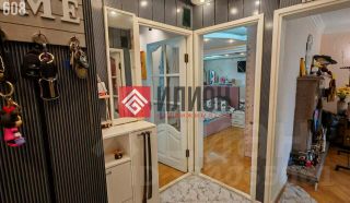 - Отделка: паркет в жилых комнатах; керамоплитка на кухне, в прихожей и санузле; зеркала в спальне и гостиной визуально увеличивают пространство;