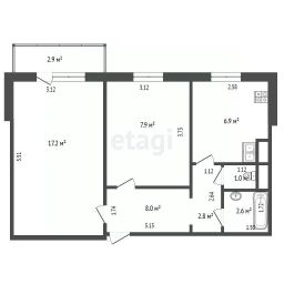 Квартира расположена на пятом этаже шестиэтажного дома. Шестой этаж - технический. В квартире сделан косметический ремонт. Квартира в аккуратном ухоженном состоянии. Состоит из двух жилых комнат, кухни площадью 6,9 м2 и раздельного санузла. Установлена газовая колонка, автономное отопление.