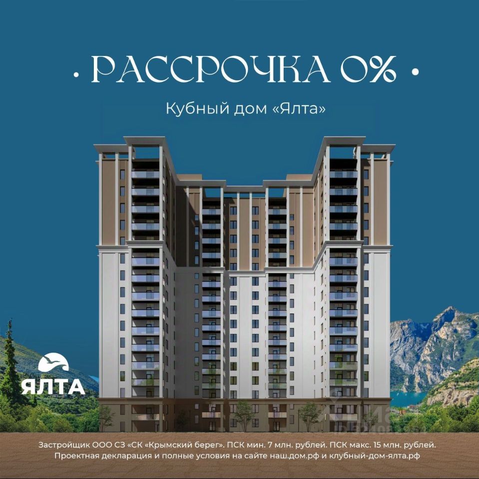 ЗВОНИТЕ ПРЯМО СЕЙЧАС, ЧТОБЫ ЗАБРОНИРОВАТЬ ЛУЧШУЮ КВАРТИРУ! Цена указана со скидкой 5% при условии 100% оплаты либо ипотека. - 80% ВИДОВЫХ КВАРТИРА НА МОРЕ ИЛИ ГОРЫ - Рассрочка 0% - Ипотека от СБЕРБАНКА - Доходность инвестиций от 40% годовых. - Безопасная сделка по ФЗ-214/эскроу-счёта Клубный дом "Ялта" — это воплощение изысканной жизни, где гармонично сочетаются статусность бизнес-класса, уют курортного отдыха и передовые технологии для комфортного проживания. Этот жилой комплекс создан для тех, кто ценит безупречное качество, безопасность и эстетику в каждой детали. Архитектура и дизайн * Современное монолитное 16-этажное здание * Фасады благородных оттенков: чистый белый, переливы шампань и тёплое золото * Первые этажи комплекса представлены в отделке рустовым камнем * Авторские интерьеры мест общего пользования * В темное время суток здания подчёркивает подсветка Характеристики квартиры и мест общего пользования * 80% лотов — с панорамными видами на море и горы. * Просторные балконы * Вместительные гардеробные и кухни-гостиные * Высокие потолки квартир 2,8 м Инфраструктура для комфортной жизни * Инфинити-бассейн * Ландшафтный дизайн и озеленение придомовой территории комплекса * Скоростные грузопассажирские лифты, соответствующие стандартам 5*-отелей, с прямым доступом в паркинг. * Кафетерий и магазин у дома * Детский веревочный комплекс "Парк-Маугли" * Скалодром * Финская сауна, хамам * На 1 этаже жилого комплекса - лапомойка и гостевой туалет Безопасность и технологии спокойствия * Закрытая территория, контролируемый доступ * Видеонаблюдение по всему периметру комплекса * Электронные домофоны с индивидуальными ключами с доступом * Безбарьерная среда * Подземный паркинг * Келлеры * Зоны хранения для велосипедов, самокатов и колясок * Мотоместа Коммуникации и инженерия * Автономная газовая котельная на крыше * Телеметрия * Класс энергоэффективности жилого комплекса "А+" * Места для кондиционеров и практическое решение для маскировки коммуникаций Расположение и ближайшие пляжи * 2,9 км до моря 10 мин на машине * 2 км от центра Ялты * Пляж Приморский — 30 мин пешком / 10 мин на авто * Пляж Массандровский — 20 мин на машине