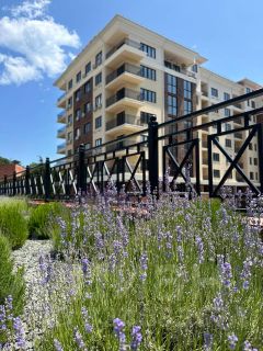 Закрытая охраняемая территория с гостевыми парковками, детской и спортивной площадками, зонами отдыха