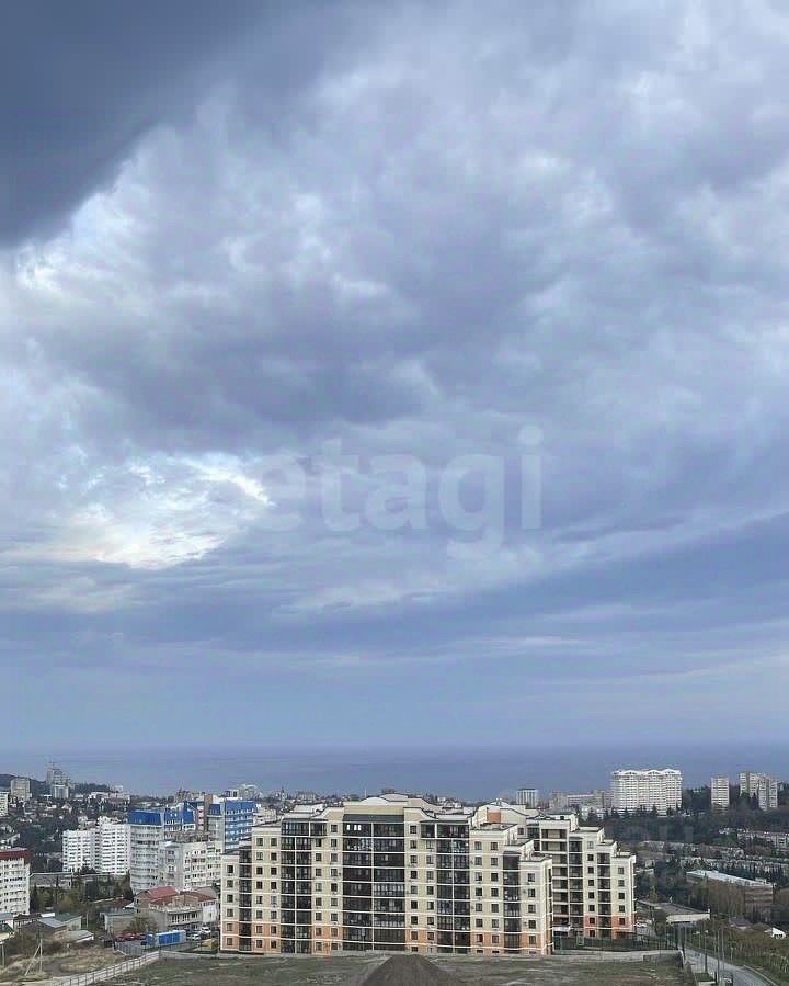 Квартира расположена на девятом этаже. Общая площадь квартиры 36 м², Жилая площадь 18.6 м², площадь кухни- 8 м² , лоджия 6м, большой совмещенный санузел -6.6 кв.м. В квартире выполнен современный ремонт, встроеннные шкафы-купе, мебель, встроенная кухня и бытовая техника. Централизованное отопление, 2х-контурный газовый котел. Благоустроенная придомовая территория, панорамный вид на Море, Крымские горы и виноградники.