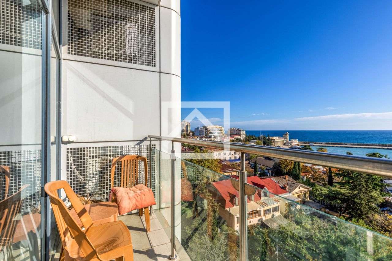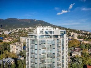 Квартира (63 м²) расположена на 6 этаже 16-этажного дома. Ключевыми преимуществами квартиры являются — потрясающие прямые виды на море и Ялтинскую бухту, стильный дизайнерский ремонт с полным обустройством мебелью и техникой, а также удачное расположение в престижном центре Ялты, всего в шаге от набережной, в современном доме бизнес-класса.