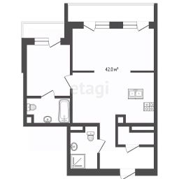 Продуманное пространство : большая кухня-гостиная с выходом на балкон, вместительная прихожая, постирочная и отдельный санузел.