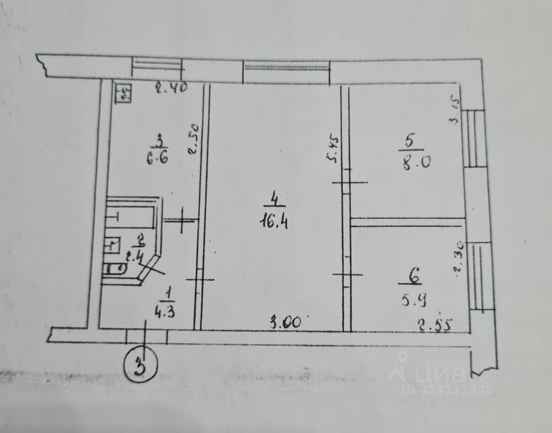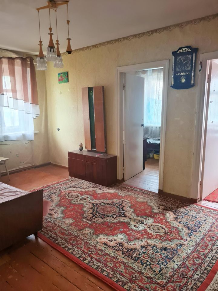 Продается трехкомнатная квартира на первом этаже двухэтажного дома в центре с. Кольцово под капитальный ремонт. Общая площадь 43.6 м2, кухня 6.6 м2. Комнаты 16,4; 8; 5.9 кв.м. Перепланировок не было. В квартире природный газ, автономное отопление, стоят счетчики на воду, газ, электричество.