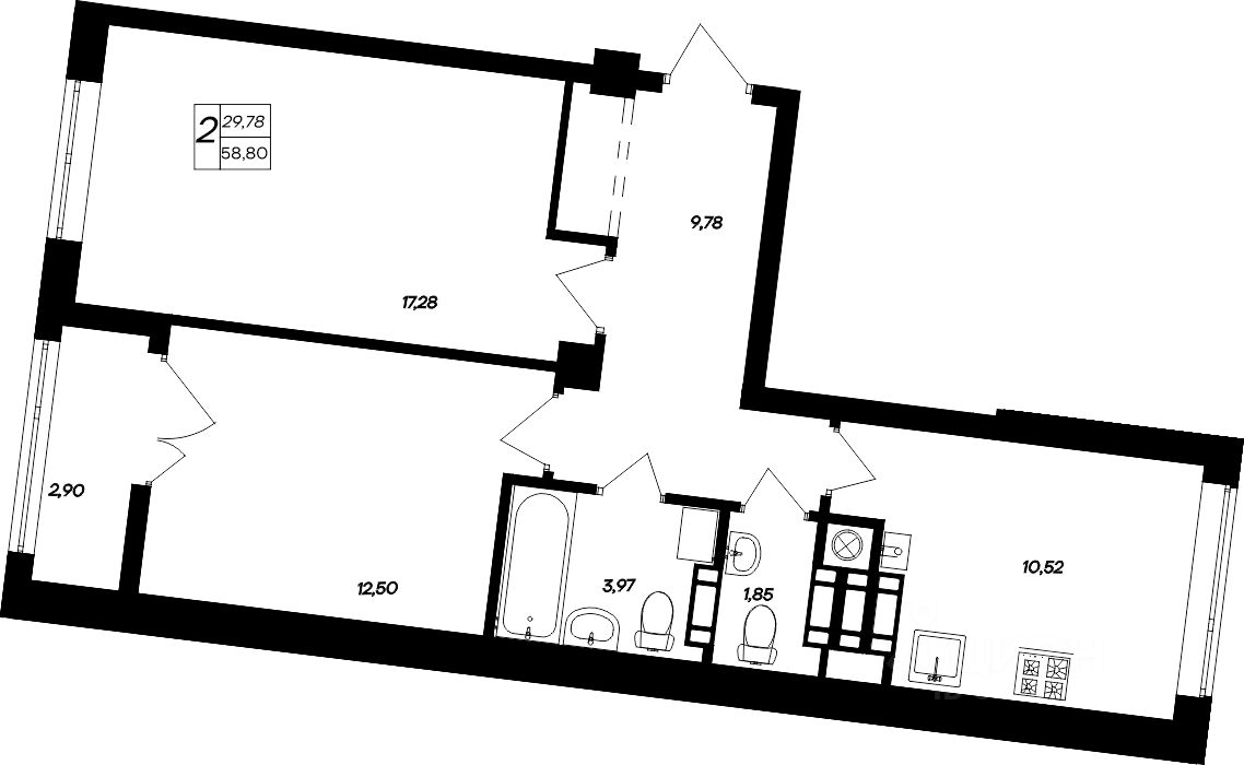 Продаётся 2-комнатная квартира в строящемся доме (Корпус 1), срок сдачи: II-кв. 2027, общей площадью 58.8 кв.м., на 8 этаже. "Парковые кварталы" - новый объект от "ИнтерСтрой"