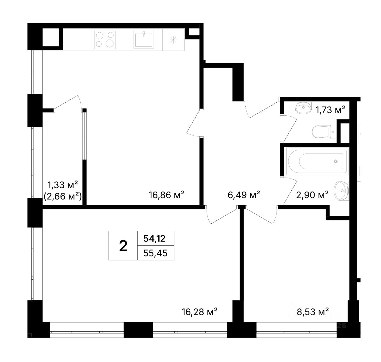 Продаётся 2-комнатная квартира в строящемся доме (Дом 1), срок сдачи: IV-кв. 2027, общей площадью 54.12 кв.м., на 1 этаже. Новый жилой комплекс "Солнечный" от застройщика "Жилой Комплекс 1" расположен по адресу:Республика Крым, Ленинский район, Щёлкино, 2-й микрорайон