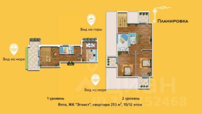 В продаже 5-комнатная двухуровневая квартира 253 м² с видом на горы и море, расположенная на 10 и 11-м этажах двенадцатиэтажного жилого комплекса комфорт-класса Эгоист в благоустроенном спальном микрорайоне Ялты.
