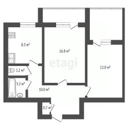 Окна выходят на восточную сторону. Сделан ремонт. Квартира очень удачной планировки: кухня площадью 8,3 кв.м, просторный коридор площадью 10 кв.м, балкон-лоджия площадью 11,1 кв.м. Лоджия разделена на две части. Одна часть соединена с комнатой, вторую часть можно использовать, как дополнительную небольшую комнату. Комнаты раздельные. Окна металлопластиковые, напольное покрытие ламинат , лоджия застеклена и утеплена. Мебель и техника остается, кроме холодильника и стиральной машинки.